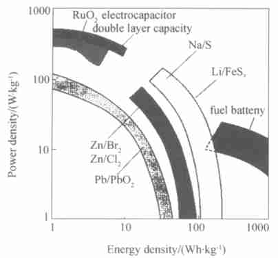 超級(jí)電容器具有功率密度高(大于1kW·kg-1 ,甚至幾十 kW·kg-1)、壽命長(zhǎng)(105次以上)、使用溫度寬(-40~60℃)及充電迅速(<3min)等優(yōu)異特性,各國(guó)政府和公司都積極開(kāi)展此方面的研究開(kāi)發(fā)工作,并已有各種產(chǎn)品得到了商業(yè)應(yīng)用。美國(guó)能源部已對(duì)研制全密封超級(jí)電容器制定了目標(biāo),其近期目標(biāo)(1998~2003年)為:功率密度達(dá)到500W·kg-1,能量密度達(dá)到 5Wh·kg-1;遠(yuǎn)期目標(biāo)(2003年以后)為:功率密度達(dá)到1500W·kg-1,能量密度達(dá)到15Wh·kg-1。目前,俄羅斯、美國(guó)、日本等國(guó)就超級(jí)電容器已開(kāi)展了大量研究工作,