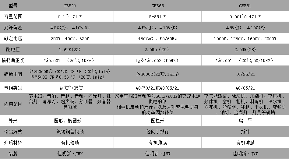 金屬化聚丙烯薄膜電容又稱CBB電容是薄膜電容的一種,它代替大部分聚苯或云母電容,用于音響、音頻等要求比較高的電路中,體積小,絕緣阻抗高,頻率響應寬廣,而且介質損失很小。下面簡單介紹3種金屬化聚丙烯薄膜電容