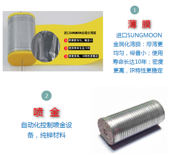 CBB20為無(wú)感結(jié)構(gòu),用金屬化聚丙烯膜作電介質(zhì)/電極繞制而成,引線采用鍍錫銅包鋼線,外層用聚酯膠帶包裹,兩端灌注環(huán)氧樹(shù)脂。 體積小,重量輕;容量穩(wěn)定性好;自愈性能優(yōu)異;高頻損耗小;廣泛用于高頻、直流、交流和脈沖電路中。