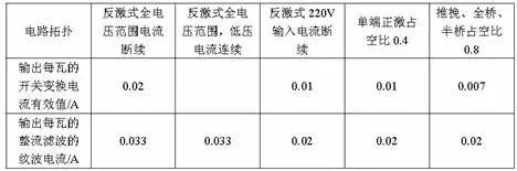 表1 各種開關(guān)變換器電路拓撲的整流濾波的紋波電流和開關(guān)變換電流