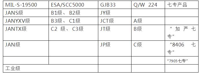 4.國外軍用元器件與我國軍用元器件質量等級對應關系半導體分立器件質量等級對應關系