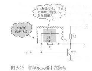并接在三極管放大器的基極與發(fā)射極之間,構(gòu)成負(fù)反饋網(wǎng)絡(luò),以抑制三極管極間電容造成的自激振蕩。