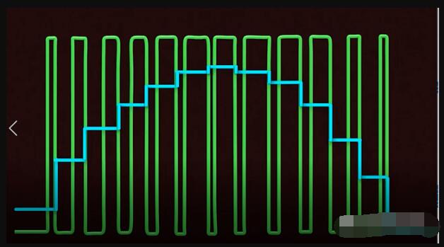 脈沖寬度調(diào)制的邏輯很簡(jiǎn)單。以不同寬度的脈沖形式產(chǎn)生直流電壓,在需要更高幅度的區(qū)域中,它將生成更大寬度的脈沖。正弦波的脈沖看起來(lái)像這樣: