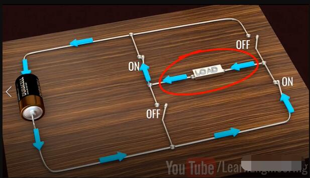 現(xiàn)在,只需進(jìn)行相反的操作并觀(guān)察電流。顯然,在這種情況下,電流流動(dòng)是相反的,負(fù)載兩端的輸出電壓也是如此。以上,就是產(chǎn)生方波交流電的基本原理。