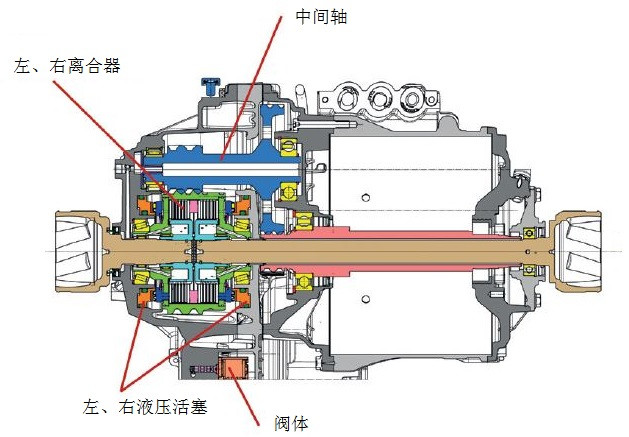 采用雙離合系統(tǒng)取代傳統(tǒng)差速器,可精確調(diào)節(jié)每個車輪的扭矩,實現(xiàn)左、右車輪扭矩矢量控制。實現(xiàn)扭矩限制,實現(xiàn)電子限滑差速鎖功能。斷開連接時提高系統(tǒng)效率。