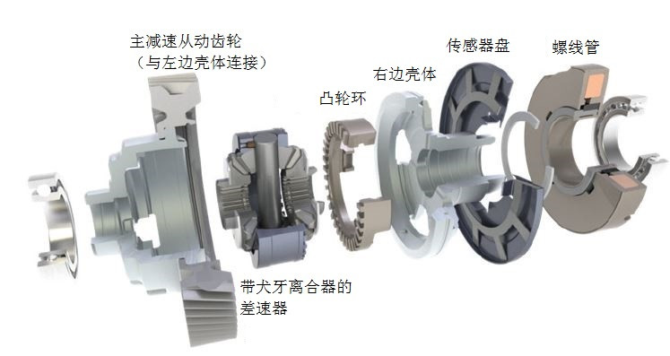 吉凱恩變速器,集成電子斷開差速器。圖3為其剖視圖。圖5為吉凱恩電子斷開差速器爆炸圖。應(yīng)用在沃爾沃XC90 T8混合動力汽車上。
